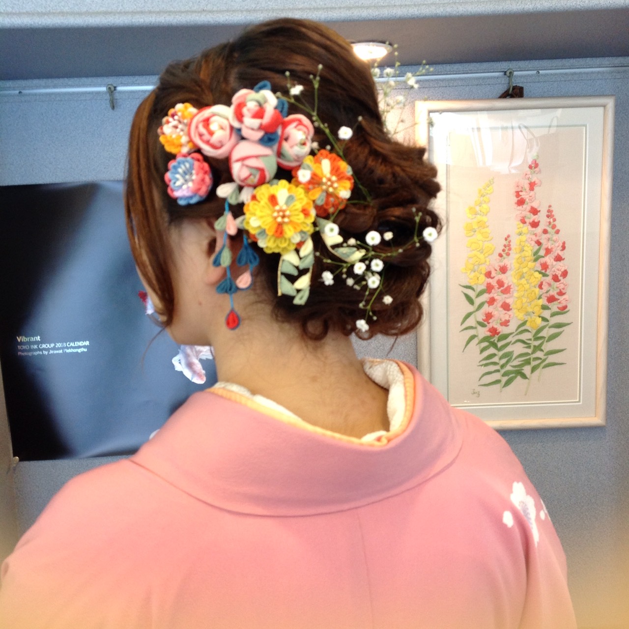 飾りは、京都で買われたつまみ飾りです(o^^o)