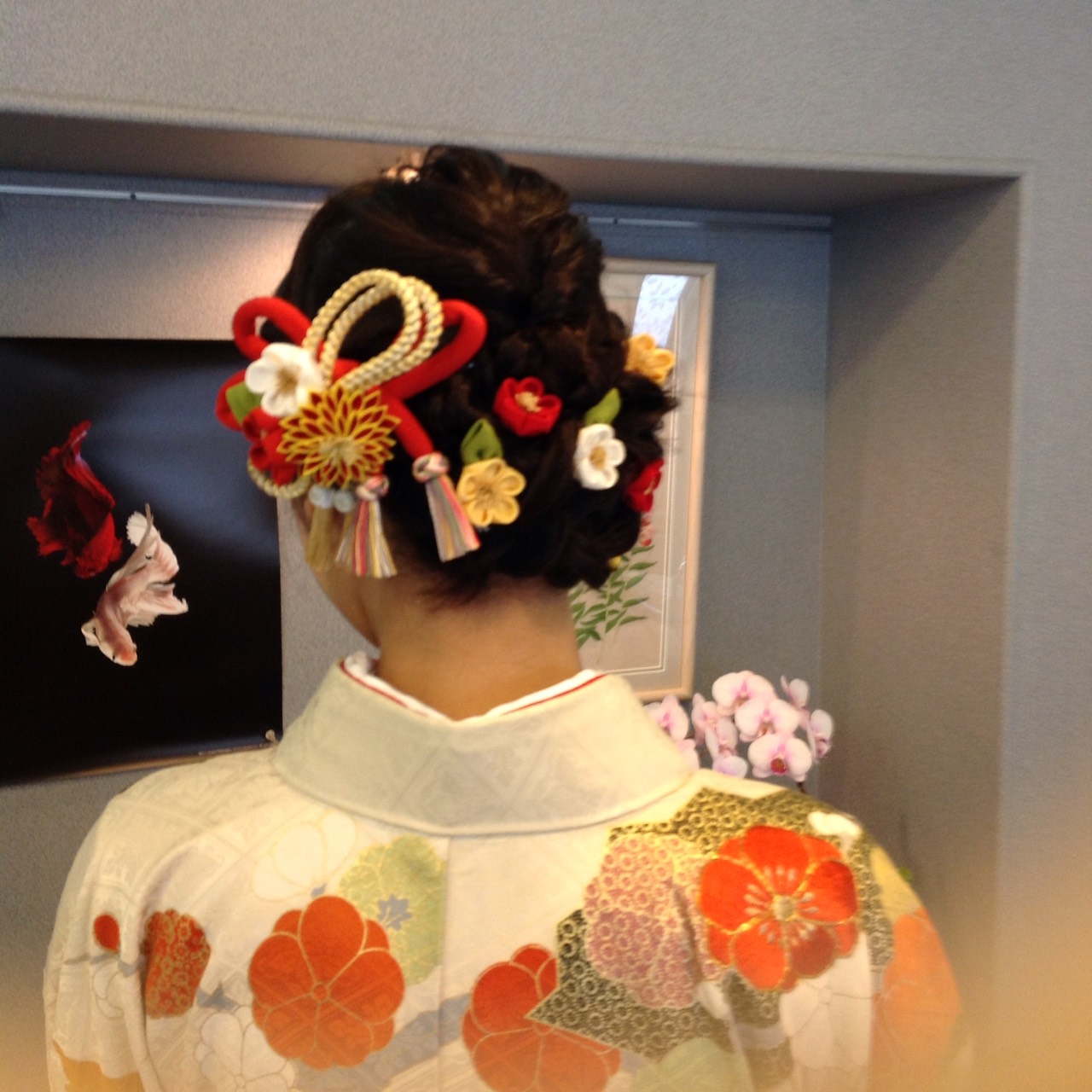 お着物、ヘア飾りもステキでした。