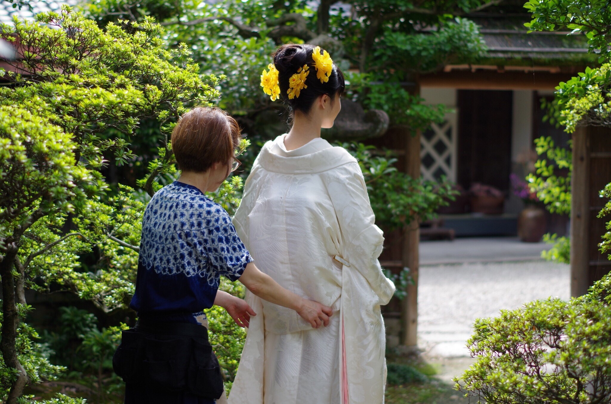 お着物が重たいので移動は介添えします。
