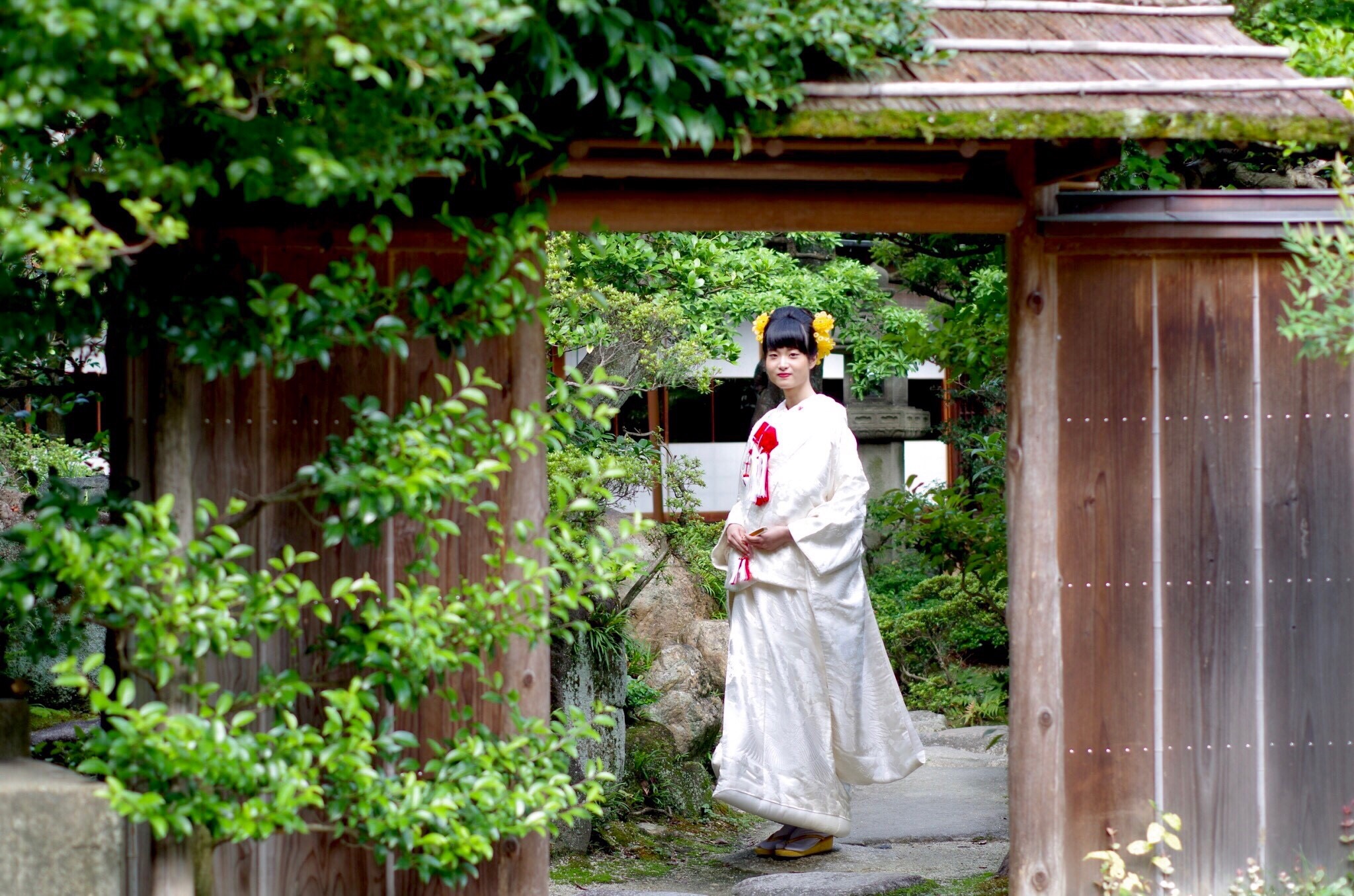 お庭、お屋敷、門、蔵と撮影スポットが沢山あり、どこで撮っても絵になります。